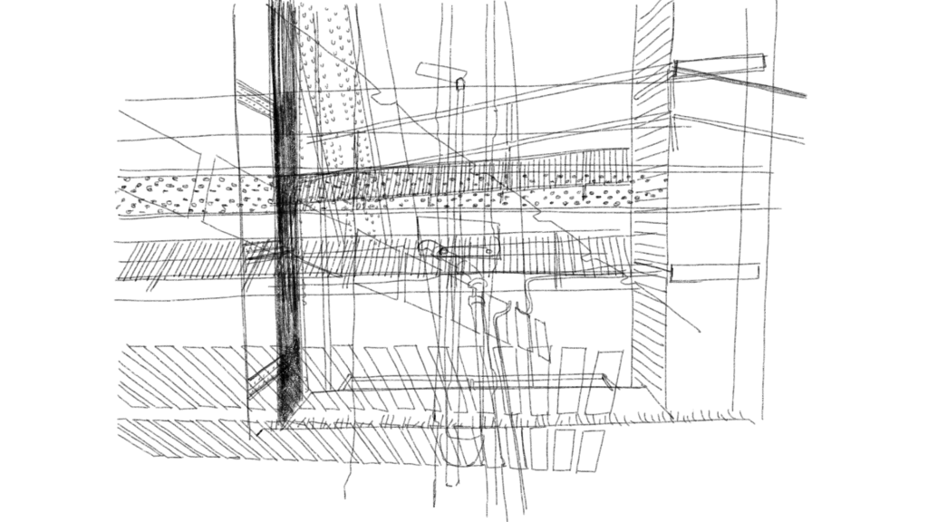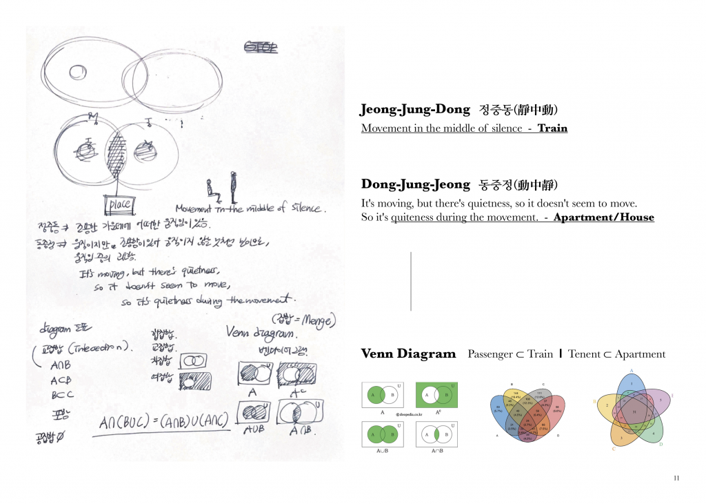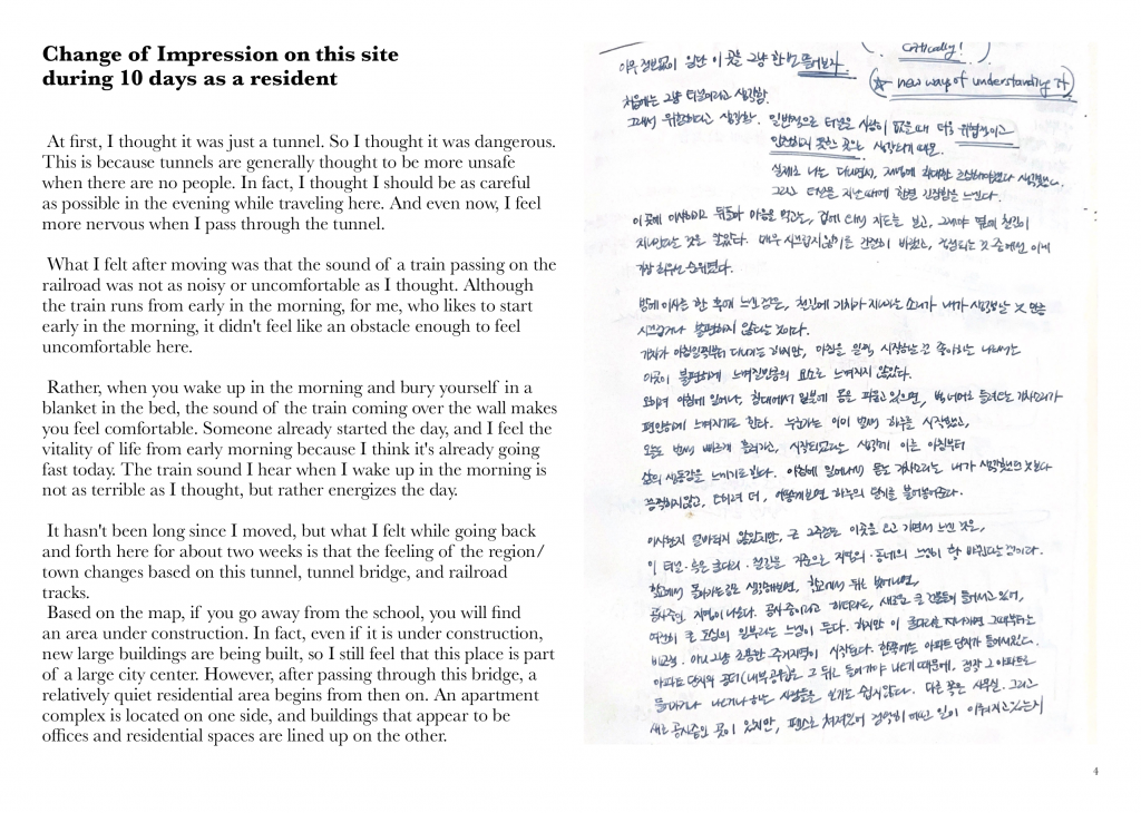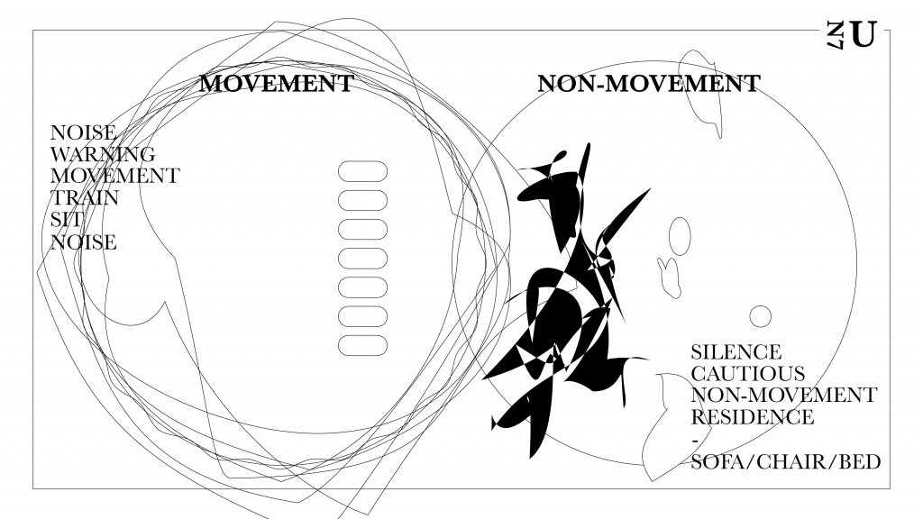 Furthermore, the apartments and residential buildings right next to the railroad tracks were seemingly very static, contrasting with the actively moving trains. Also, since the residential building is a very private space, it presented another contrast that people could move as they wanted, unlike in the train
