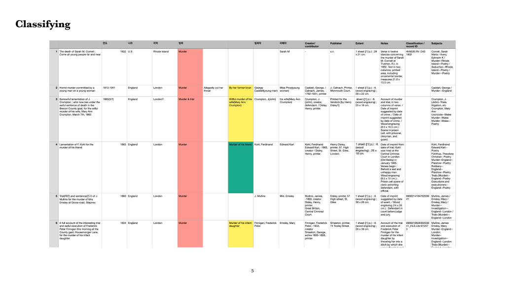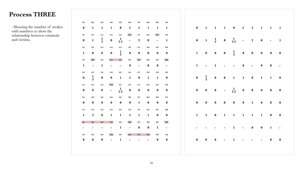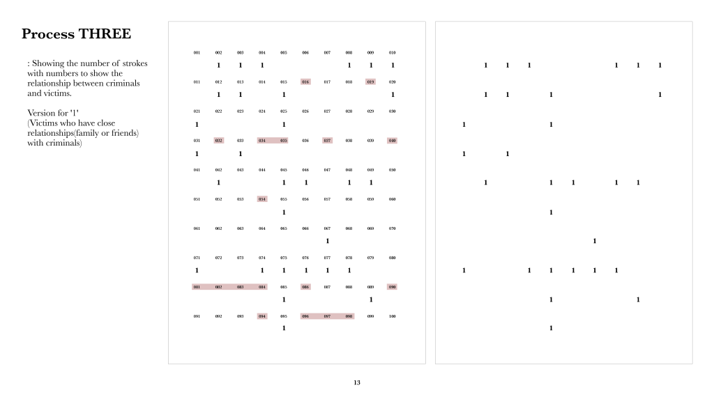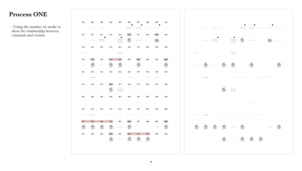 Following the feedback on the last tutorial group, I classified a hundred of each issue based on their content to find out the method inside of the set. During this process, I figured out that the relationship between criminals and victims were interesting. Half of the crimes of murder were related to domestic crime and another half of them had no relationship between the criminals and the victims. Since the images on the set were too crucial that I decided to present these interesting points with data-visualising.