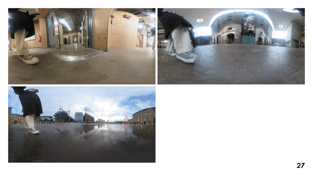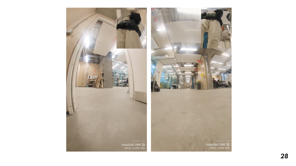 With Insta 360 camera which captures images into 360 degrees, we mimicked Street View. But based on the idea that Street View generally has an eye-level of ‘adult photographer’, we captured the images and videos close to the ground.