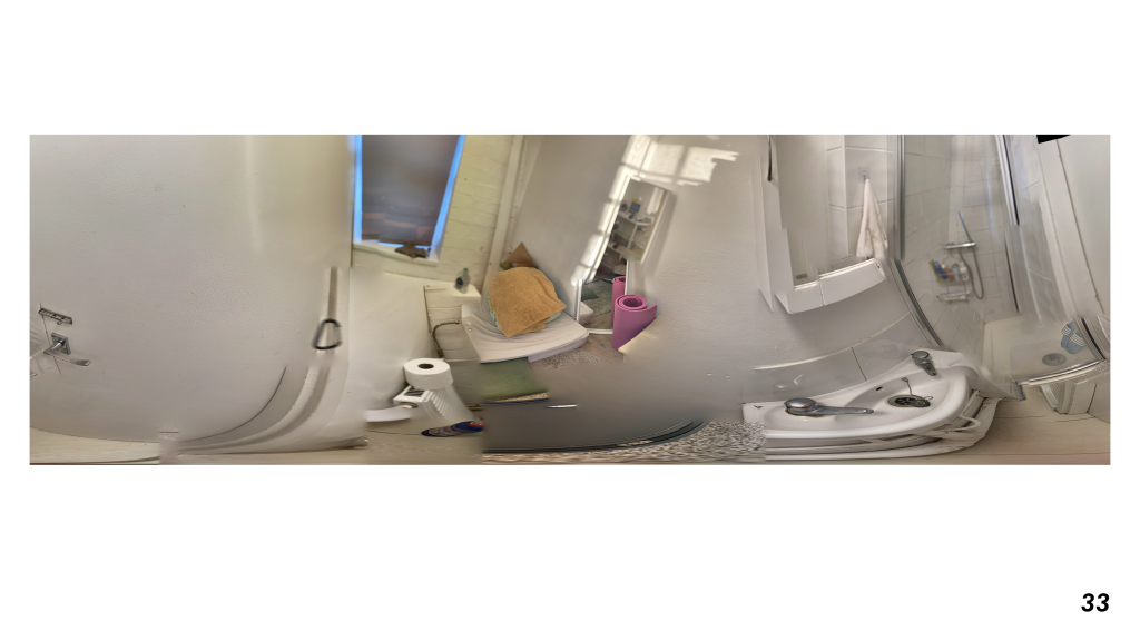 Also, we did capture 360 videos in our private space. The places we can check on Google Street View are public spaces, and private or sensitive spaces are blurred or erased on them. Motivated by this fact, we had experiments to capture our own private space. Since the bathroom is the most private space generally, we also captured them.
