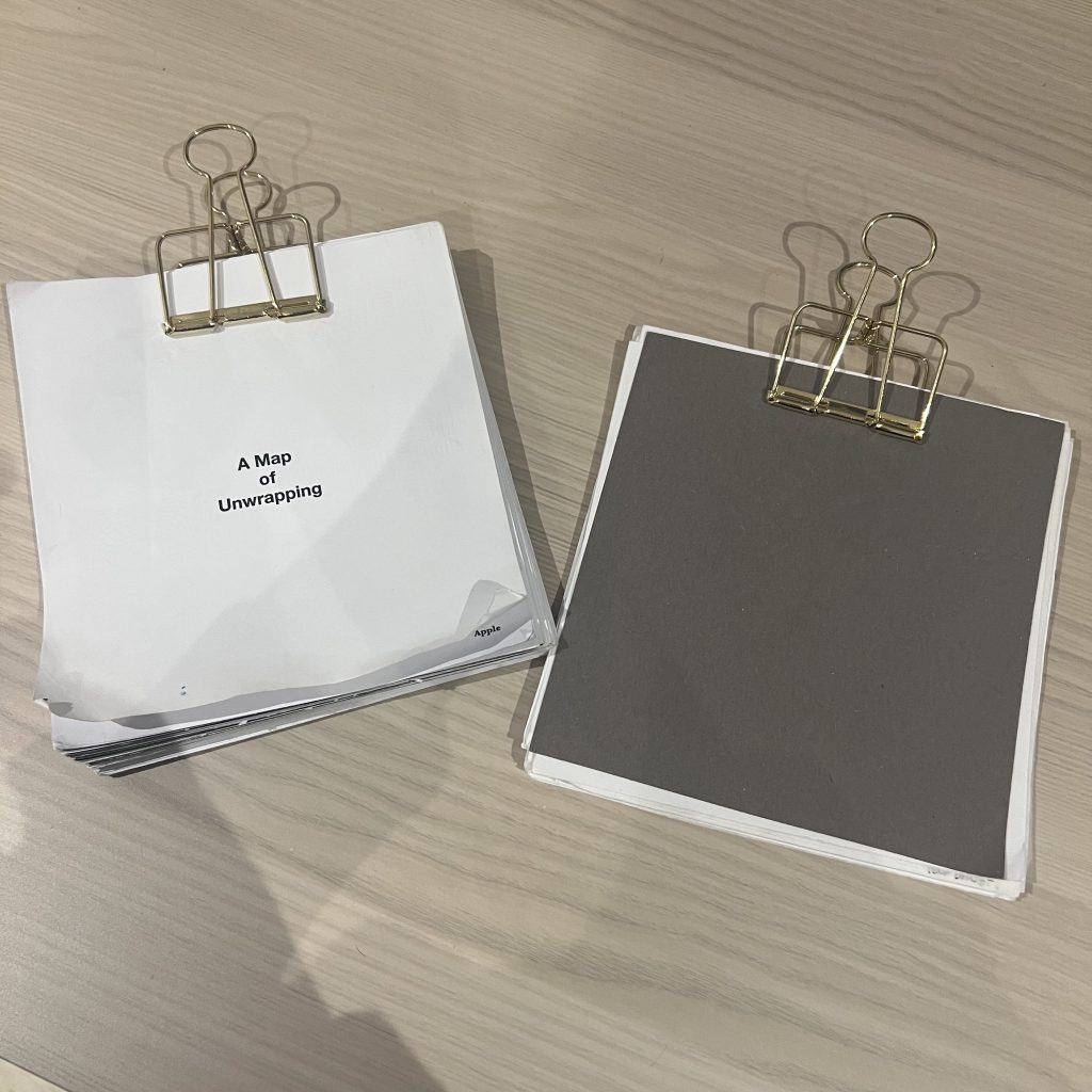 Even though I’m not literally ‘folding’ or ‘unfolding’ the objects, my second Map of Unwrapping also has materiality and damage throughout the process. I was ‘unwrapping’ the object, but at the same time, I was rubbing and scratching the paper as an act of ‘unwrapping’.
